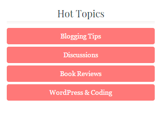<a href="URL TO CATEGORY OR TAG ARCHIVE" class="category-button">Category Name</a> <a href="URL TO CATEGORY OR TAG ARCHIVE" class="category-button">Category Name</a> <a href="URL TO CATEGORY OR TAG ARCHIVE" class="category-button">Category Name</a>