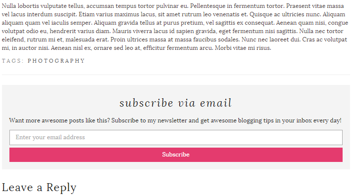 Hey there, Ashley! Question for you – how would one put a subscription box below one’s posts in WordPress like what you have on Nose Graze? Is there a plugin or something to install? Thanks! π