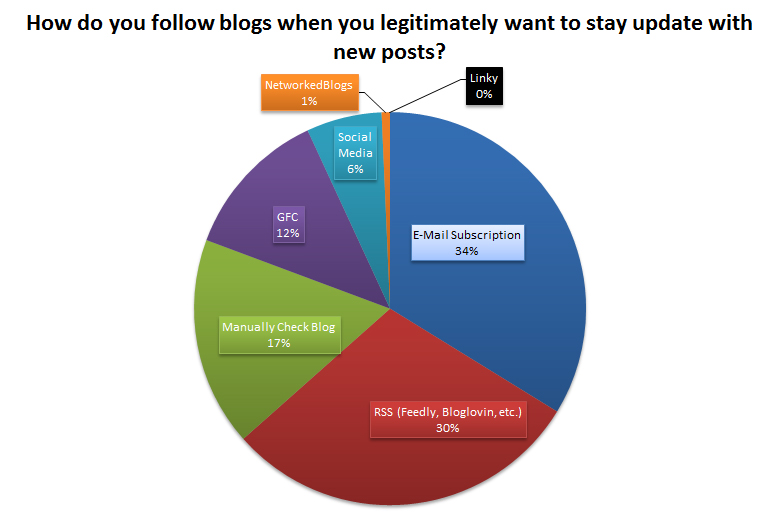 I recently ran a poll where the question was: How do you follow blogs when you LEGITIMATELY want to stay updated with new posts? And as of today, here are the results:
