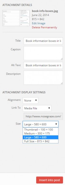 So what I’m saying is that you should really only be uploading images at the exact size you want to use them at. I personally resize all my images in Photoshop before uploading them. I then run them through various compressors to decrease the file size even further. However, if you’d rather not do that, then you should at least make use of the sizes in WordPress (thumbnail, medium, and large).