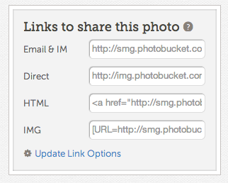 Then, you can click on the image and see a box called “Links to share this photo”. You want to click the one called “Direct” and copy that URL.