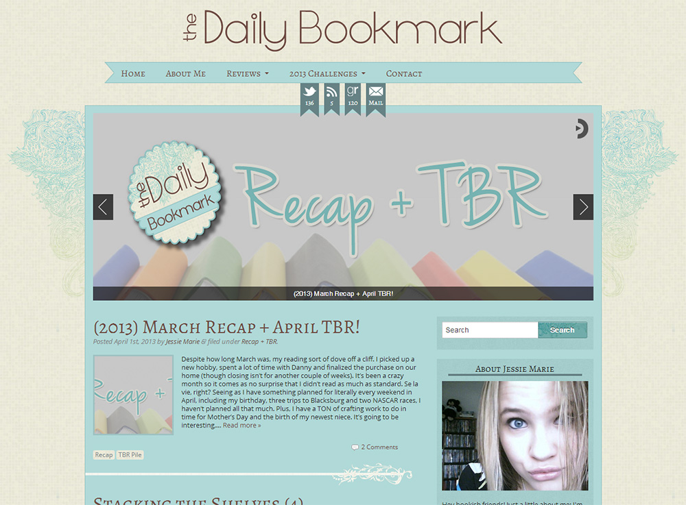 I made a custom WordPress theme for Jessie Marie at The Daily Bookmark and also have several bloggers using my pre-made WordPress themes!
