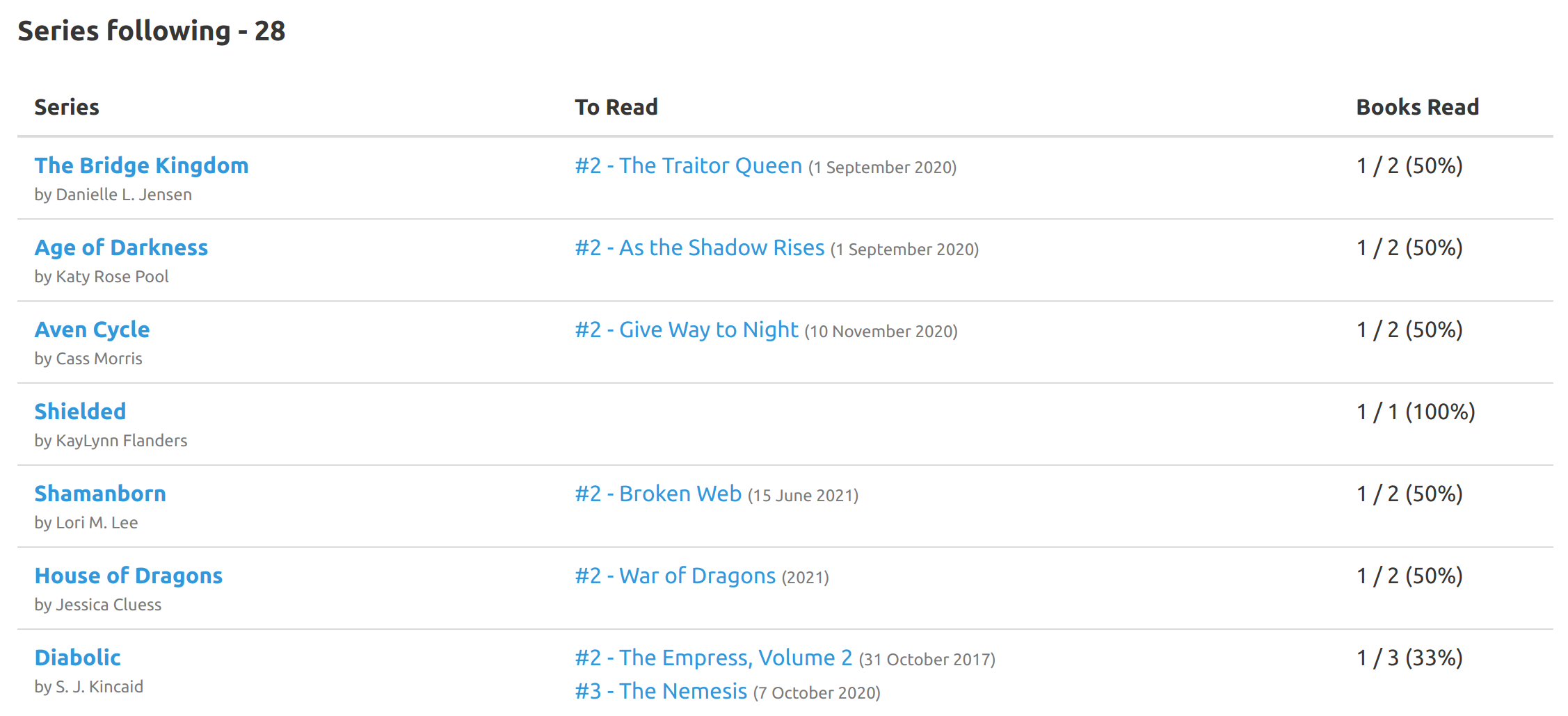 You can follow any series you want and it will appear on your personal tracking page. This lists how many books you’ve read in the series, and the books you have yet to read. Additionally, if a new book is added to the site in a series you’re following, it’s automatically added to your library. (In the future there will also be email alerts, but I’m still testing those!)