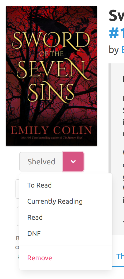 You can mark a book as “to read”, “currently reading”, “read”, “DNF” (did not finish), or you can just add it to your library without a status. I tend to do the latter for books that I have my eye on but I don’t yet own and/or aren’t sure if I really want to read them yet.