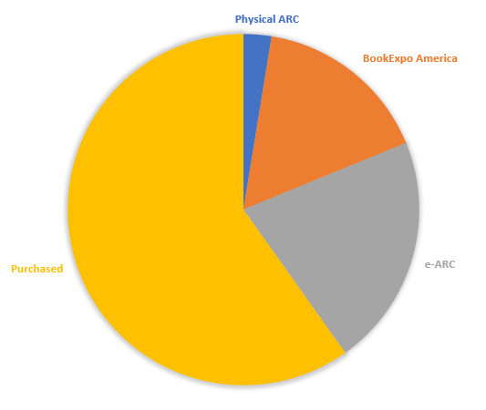 Sadly BookExpo America books didn’t fare well this year. Funnily enough, those BEA reads were all either 5 star reads or DNFs and that’s why the average rating is so poor. 🙁