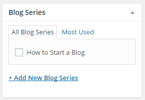 After you’ve added the code to your site, you’ll have a brand new section for “Blog Series” in your sidebar when adding/editing a post!