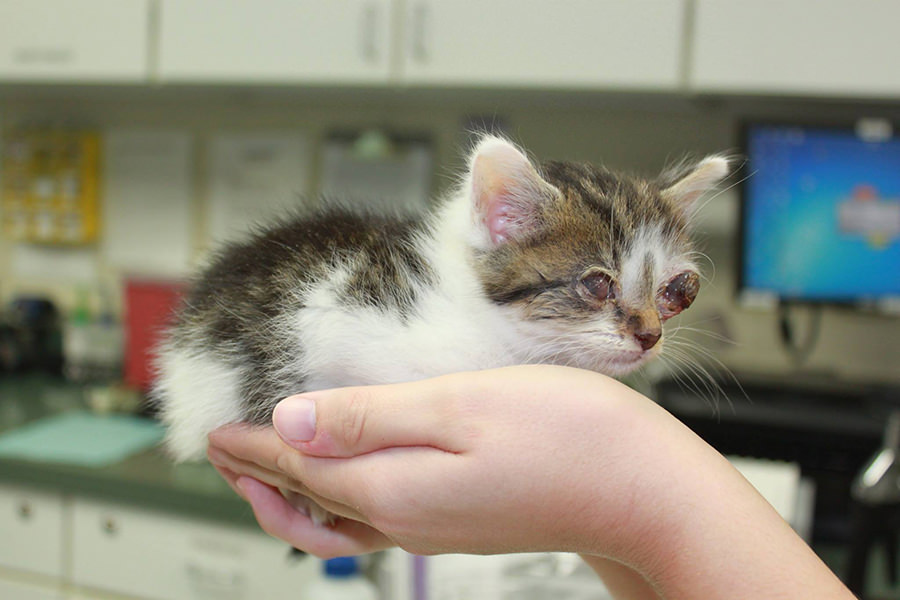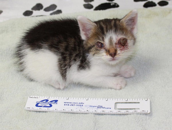 I’m putting the photos in spoiler tags because this is a cat who desperately needs to get his eyes removed and it is a bit gruesome. But that aside, the kitten is ADORABLE!