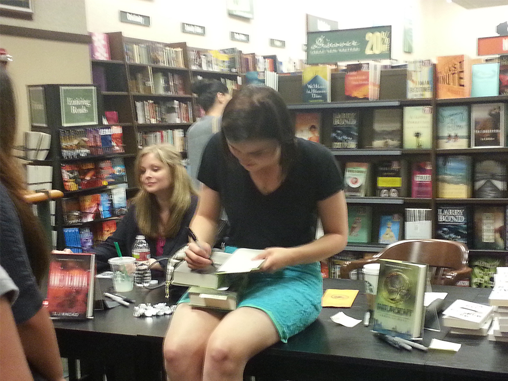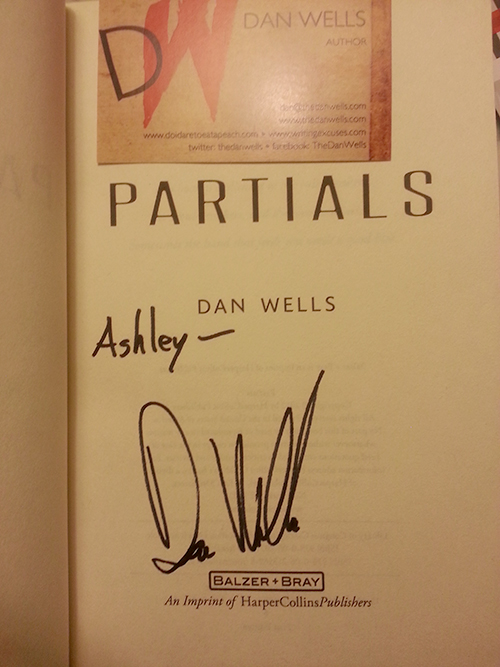 After about 30 minutes, they started pulling people out of line to get their books signed by S.J. Kincaid, Dan Wells, or Aprilynne Pike. I kind of felt bad for them because their books are AWESOME but clearly most of the people there were only interested in Veronica Roth. I mean she’s awesome too, but I still felt bad that there weren’t more people getting signed books of Insignia, Partials, and Destined! Anyway, so I quickly nipped out of line to get my books signed by those three awesome authors!