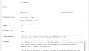 One thing I had to abandon outright was as the series & sequence option in the UBB; I used to say “Harry Potter, No.1” (for instance!) and nothing was threading properly. I reverted back to just using serial names and adding on the sequences myself in the extra data bits I add on my own. For instance, I add a link to the publisher and their Twitter handle; Formats available, etc. I never could sort out how to add those to the UBB database opts to make it more streamlined.