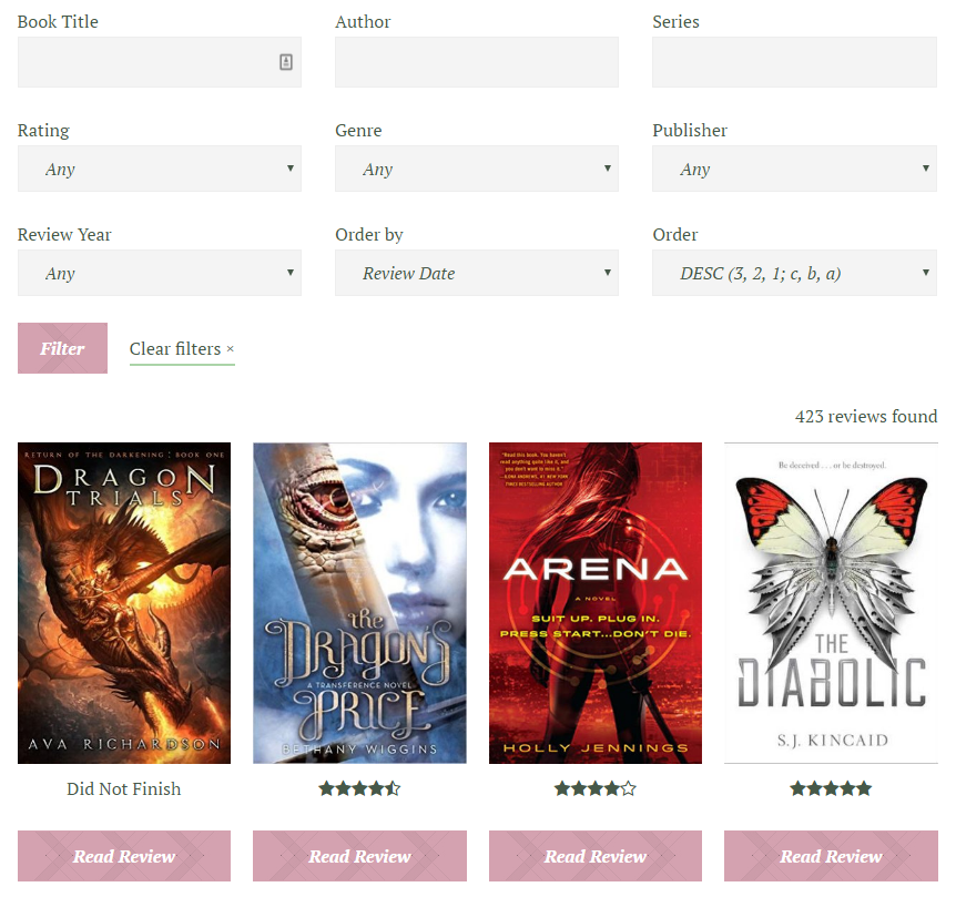 This looks amazing. I love all of it and would really love to have our review archive look like this! I also love the way the book info is separate from the reviews, kind of like how authors are put in differently in UBB. You’re amazing!