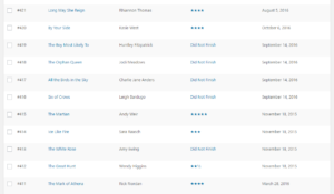 – Note that I read a book without rating or reviewing (but it appears in stats as a book read).