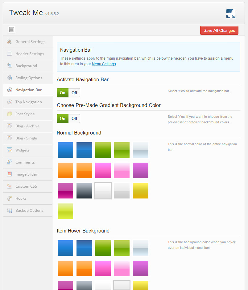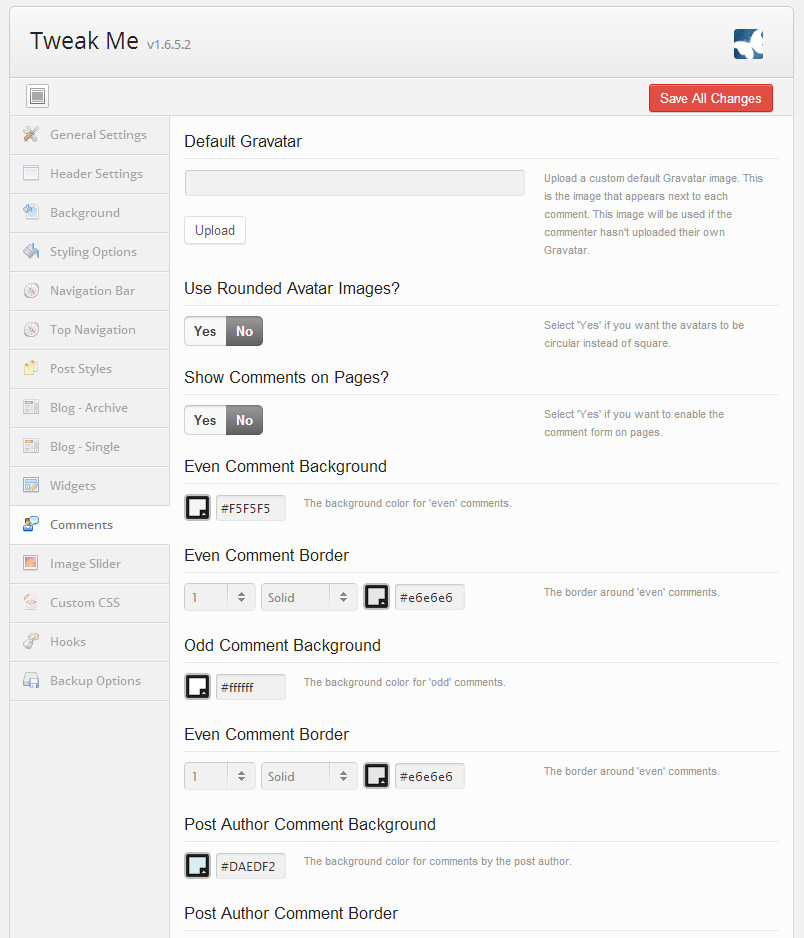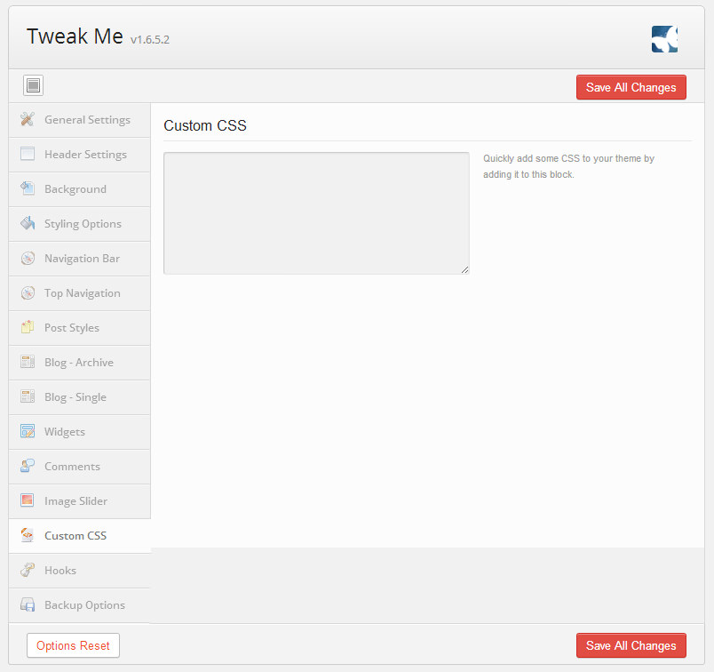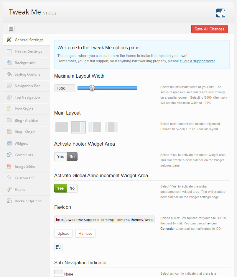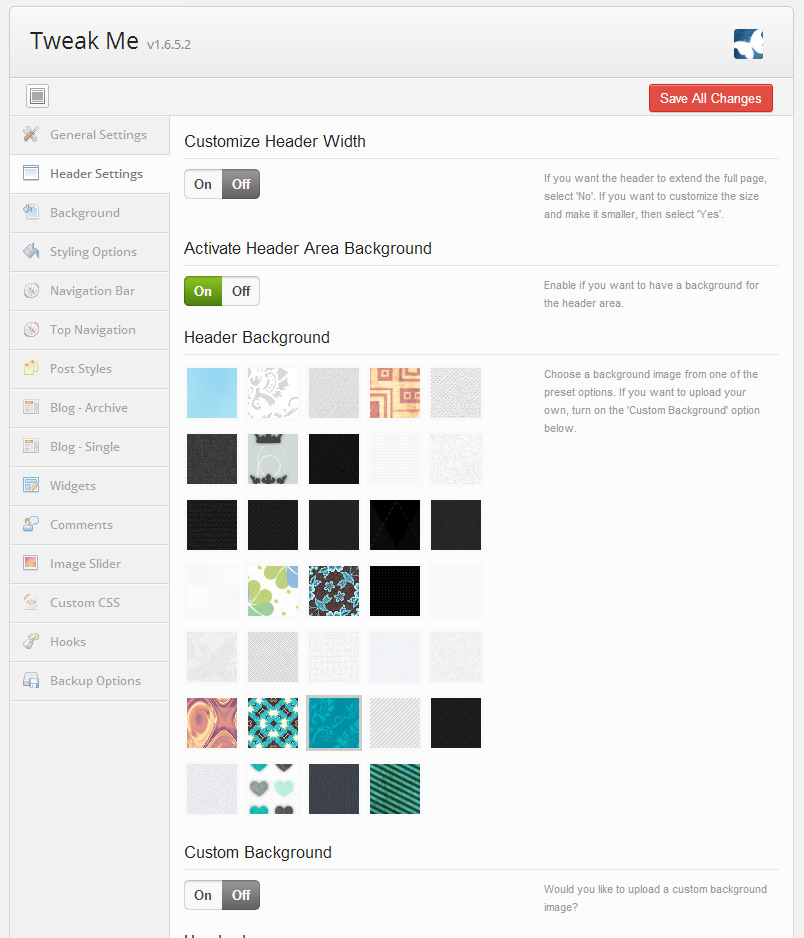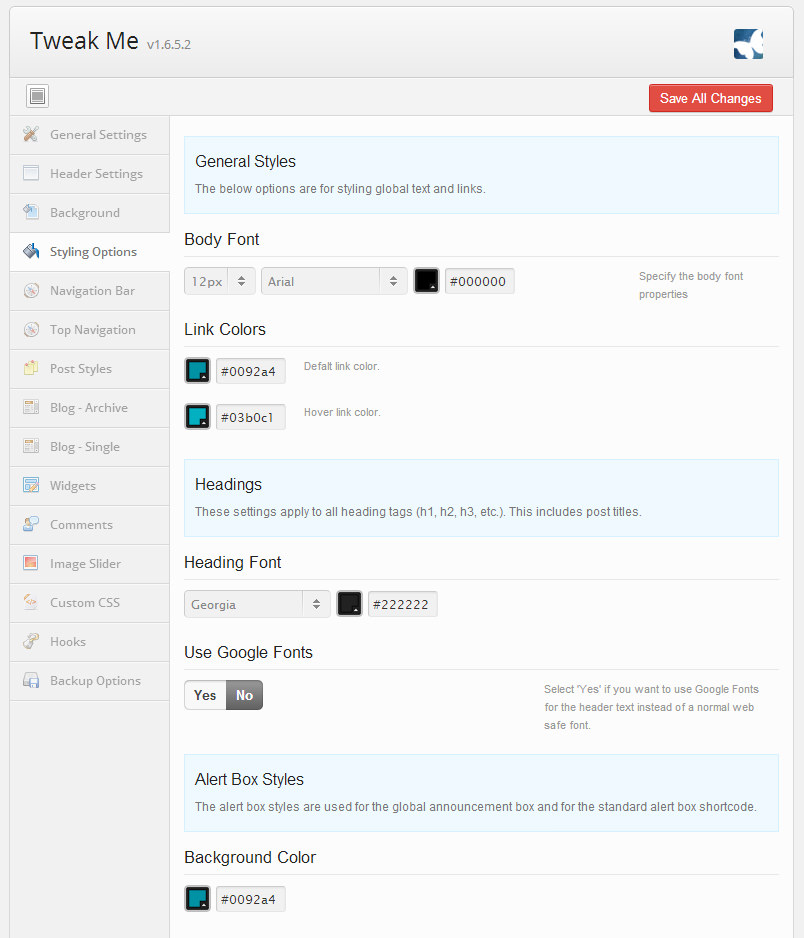 As an example, here are a few screenshots from the Tweak Me Theme options panel: