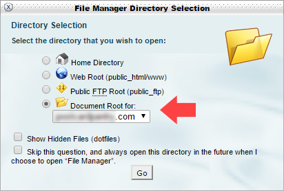 A little window might pop up asking you to “Select the directory what you wish to open.” Select, “Document Root for {your website here}”. If that’s not an option, “Web Root” is also okay.