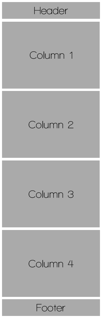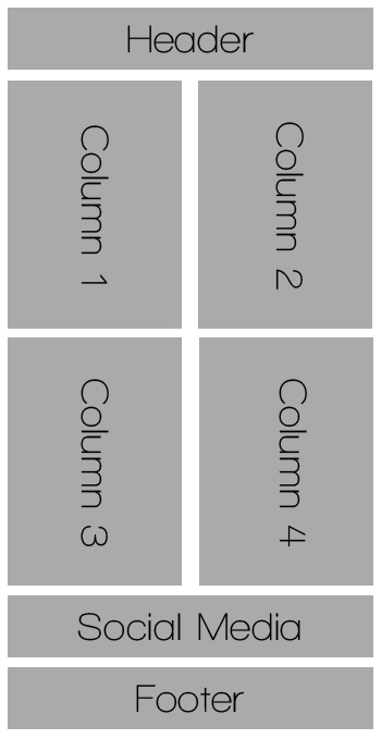 So in this example, we have a class called “column,” which originally has a width of 25% and floats to the left. That means we can have four columns side-by-side. But when the browser width falls below 767 pixels, we change the width to 50% so we can only have two columns side-by-side. The remaining two would appear below the first two.