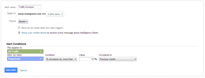 I never though to use these alerts in the described way. I loved all of your examples and set them up. If I get some helpful data maybe I will add more. I am thinking about breaking up refferal alert to separate websites…