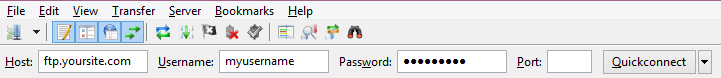 Once you have FileZilla downloaded, open it up. At the top of the screen, you’ll see a bar that looks like this: