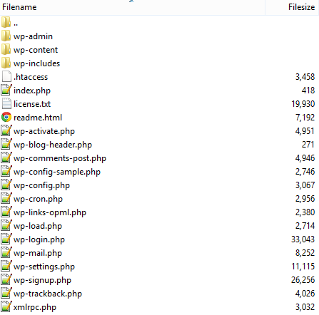 Those files are WordPress files! See how they’re all prefixed with wp- ? What you see at first are the core WordPress files, but we can navigate into the theme/plugin files too.