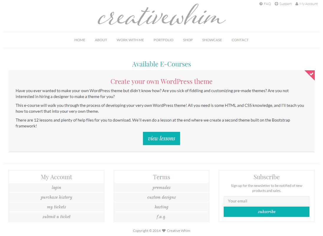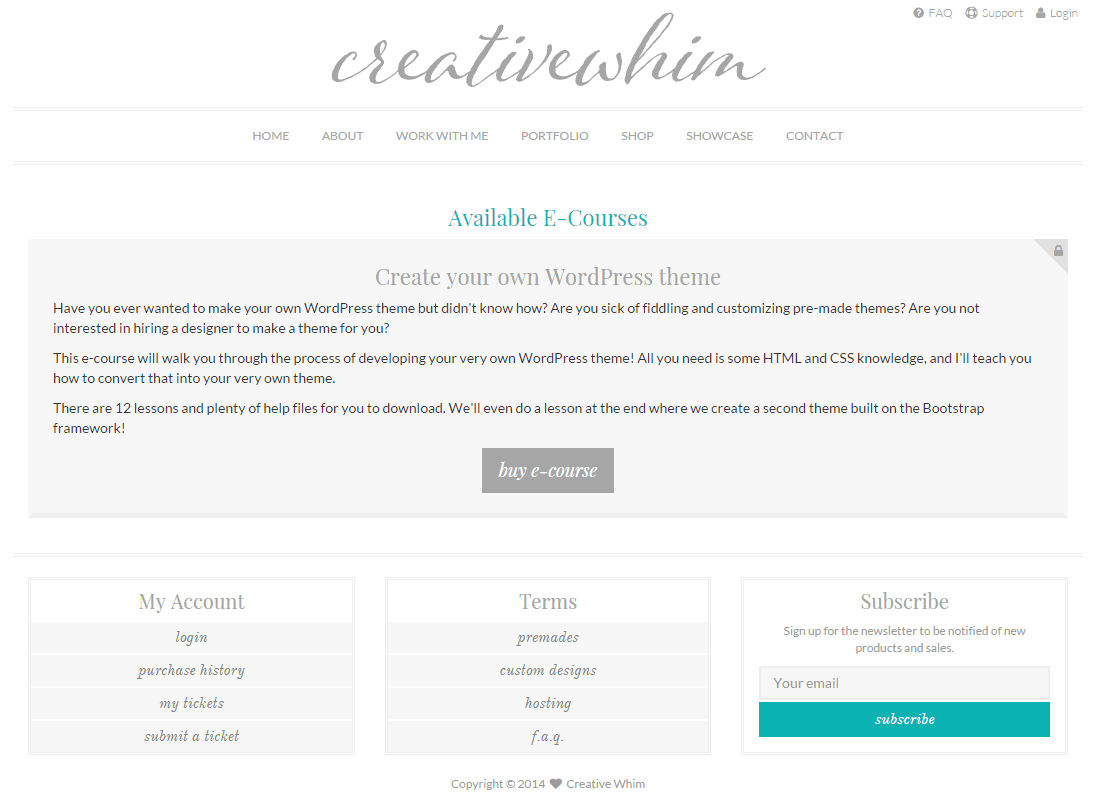 - My students may have to create a new account (like a coursecraft.net account). I don’t want them to have to juggle one account on creativewhim.com (for plugin/theme purchases and support) and another one on an external site like coursecraft.net (for the e-courses). It just gets confusing. I prefer to have ONE login system for all my customers that gives them their entire purchase history with me.