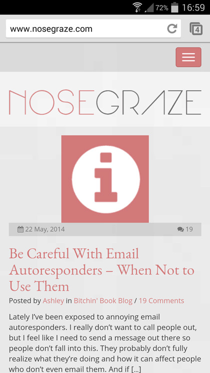 I am on the free WordPress blog and i guess one of its perks is that most of the themes in wordpress.com has responsive functionality. I agree that it is extremely important to have a responsive design for your blog. I get frustrated when I visit a blog/website and it’s not suitable to view on my Smartphone or tablet because I have to zoom in and scroll sideways every time I read a post.