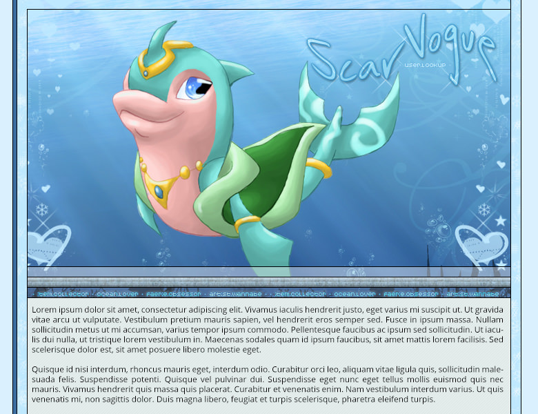 I briefly went through this stage where I spent all of my time designing profile layouts for this online game called Howrse. I’d design the layout on Gimp (basically a giant header image with the player’s name and a box for text) and slap a box with a scroll bar on it.