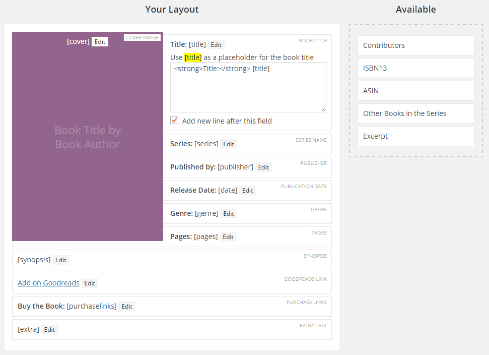 The format may look simple, but the best part of the plugin is that the layout is customizable. This is something that other author plugins lack. Here’s a look at the layout builder: