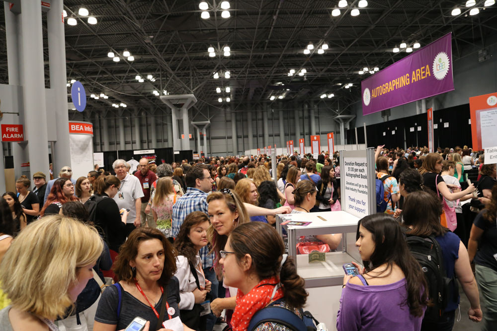 This year, they rebranded it as “BookCon”. At normal BEA, attendees have access to the entire exhibit hall. This year, at BookCon (Saturday only) they basically drew a line down the exhibit hall and said “If you’re a BookCon attendee, you cannot cross this line”. So BookCon attendees had access to like 1/3rd of the floor. They could see the booths on that side, visit the autographing area, etc. So it was kind of the same event, but A TON more people and just for one day only. However, there are fewer galley drops and stuff on Saturday/BookCon. And I heard they were actually selling a few books to BookCon people instead of giving them away for free.