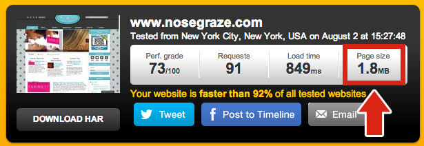 - Use Pingdom’s website speed test tool to calculate your blog’s page size. Simply put in your blog URL, press “Test Now” and wait for the results.