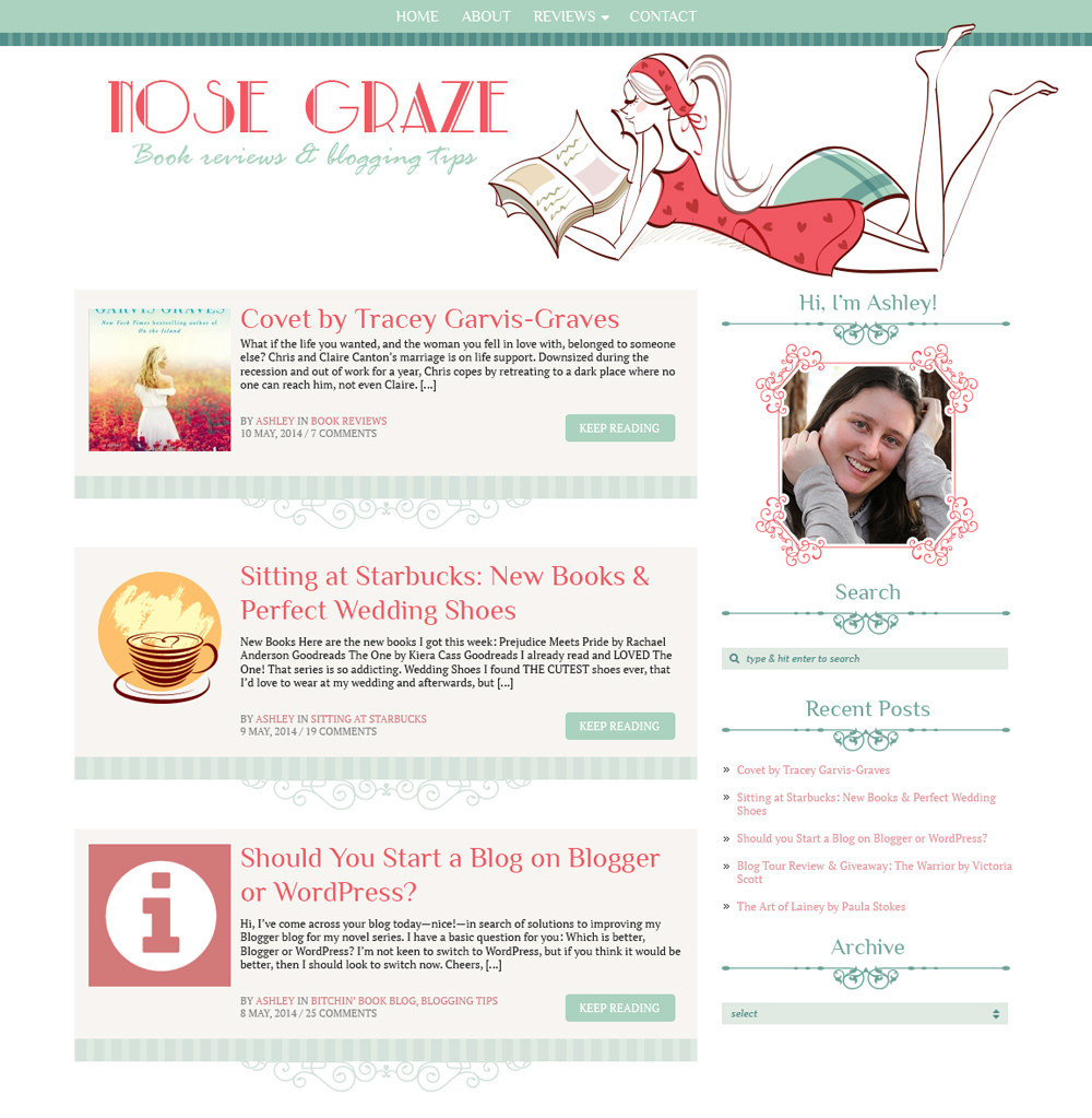 I love the pre-made theme “Pretty Reader”. It’s gorgeous! Also the one you did for your client is very dark and sexy. I love it too! You do such amazing work.