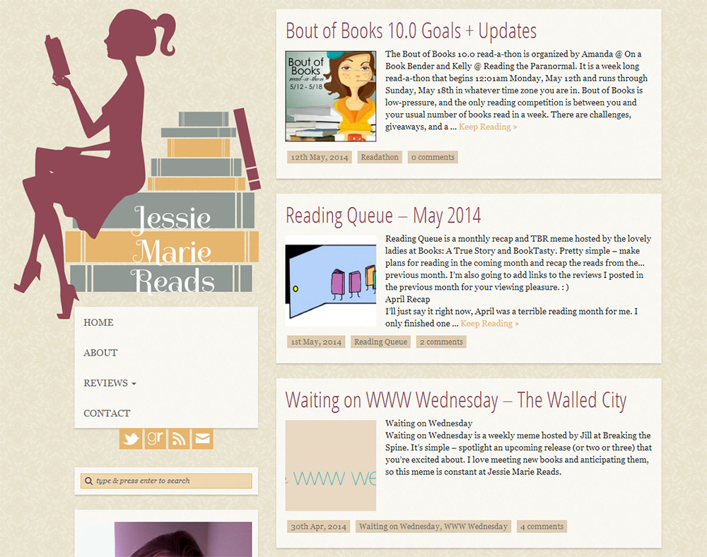 I feel weird for fangirling over my own design, but I LOVE THIS THEME! I had the absolute pleasure of working with Jessica from Jessie Marie Reads to create a new design for her blog. Jessica was one of my very first book blogger clients over a year ago when I created a theme for her blog, The Daily Bookmark. Jessica wanted something fresh, new, and exciting for her new blog name, Jessie Marie Reads.