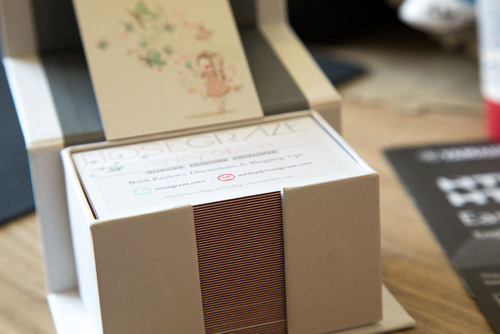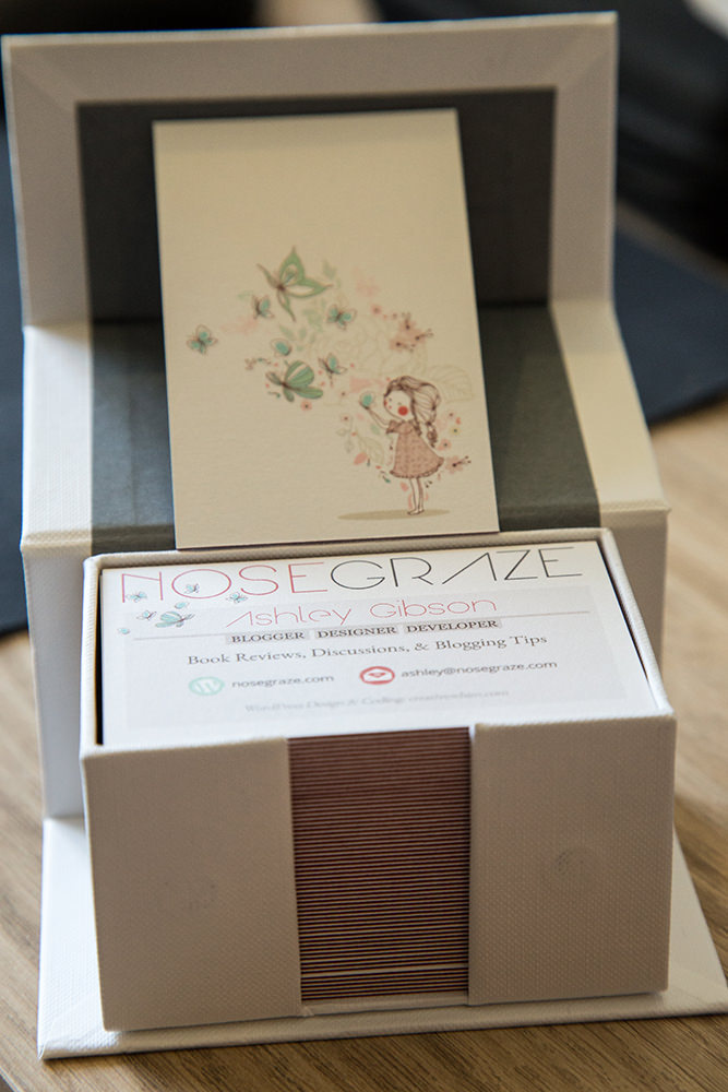 I got my business cards for BookExpo America! This year I made cards for both Nose Graze and Creative Whim. I’ve had a few people ask me for my business card when they want web design services, but I never had one. But now I do!
