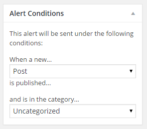 So you can choose when the email gets triggered. The category dropdown is useful for those lists I mentioned before. You can set up one Post-to-Email campaign for posts in “Any Category” (like my “All New Posts” list), and another campaign for posts in the “Book Reviews” category, etc.