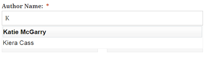 As you can see, the plugin has seamless integration with Ultimate Book Blogger. Some of the fields even pop up with recommendations. For example, if you start typing an author name, the reviewer will be prompted with options that already exist. Here’s a screenshot of the author field in action: