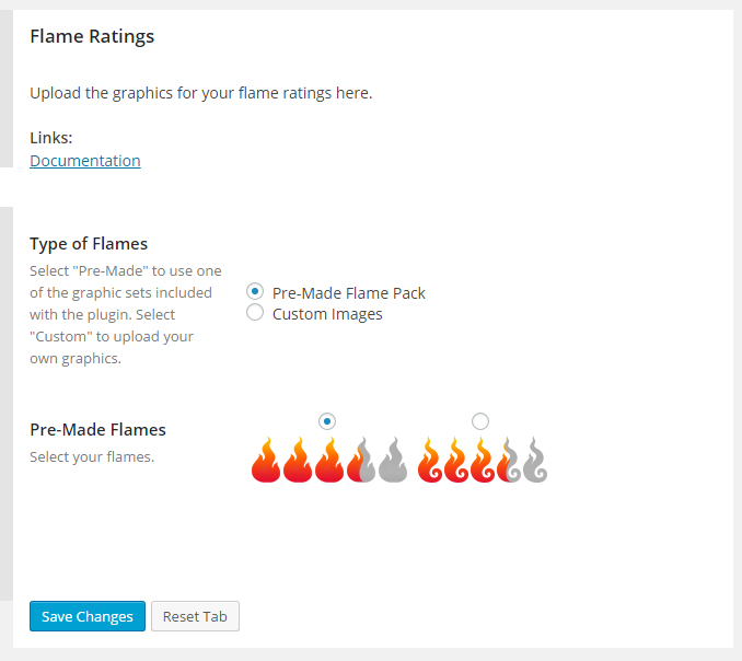The plugin comes packaged with some flame graphics so you can show off your ratings. Or, if you want, you can upload your own graphics.