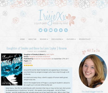 I liked Cherie Reads and My Novel Opinion the best. But there are so many cool looking formats, that was a hard choice!