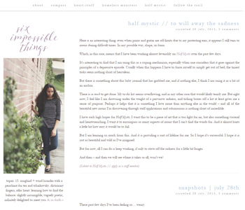 It’s so fun how every blog looks so different and still uses the same theme. That’s what I love about the Tweak Me Theme. There are some blogs I hand’t heard of before, but alos quite some familiar ones. I can’t wait to hear who wins!