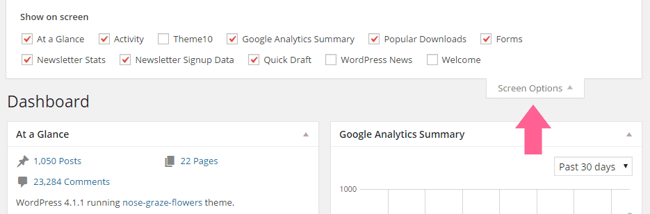 I’d never even considered changing my dashboard around until now. And I’d definitely giving that Google Analytics plugin a looksie. The actual site is headache inducing. x