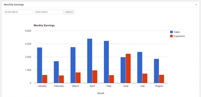 I turned a WordPress installation into my very own accounting system. I can log sales and expenses. Whenever I get a new sale in my shop, it automatically gets logged in my accounting system. The admin dashboard has widgets that automatically generate bar graphs and pie charts.