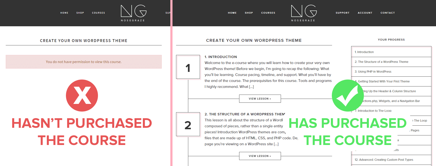- The customer now automatically has permission to view the e-course through their account when they login.
